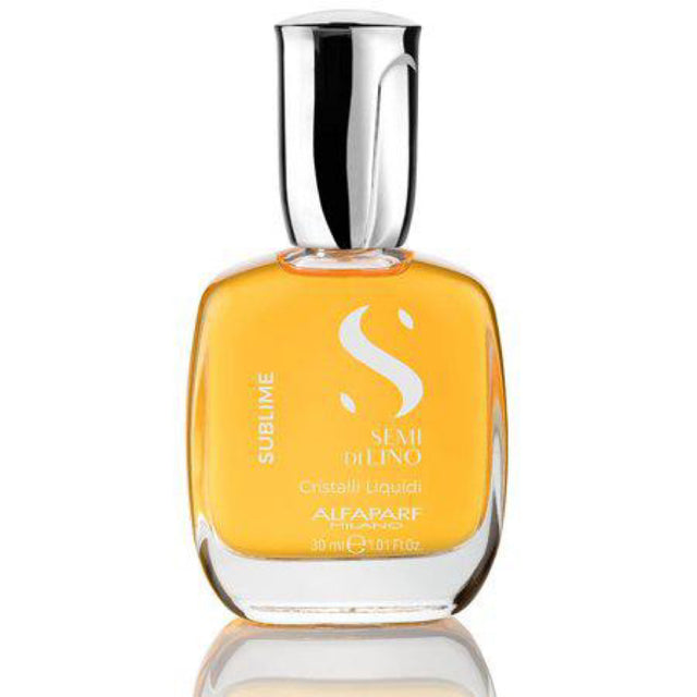 Alfaparf Milano Semi di Lino Sublime Cristalli Di Seta is a bi-phase smoothing and finishing serum for fine hair. It makes hair soft, smooth and protects it from the damages of polluting agents. The instant hair make-over oil provides immediate gloss, shine, silkiness, softness, manageability and protection.