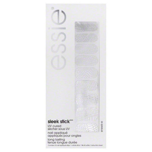 ESSIE SLEEK STICK STICKERS (SNEEK-E) By ESSIE A silvery serpentine snakeskin. Essie Sleek Stick Nail Appliqu_s' high fashion patterns are inspired by the most sophisticated materials, so each nail design looks like it was hand crafted. Inspired by the UV gel technology in salons, Sleek Stick Nail Appliqu_s have been UV cured and provide long lasting wear with a high gloss finish.