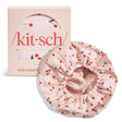 The KITSCH Luxury Shower Cap features a waterproof, reusable design with a satin lining for added comfort. Its adjustable, non-slip fit accommodates both long and short hair, combining practicality with a stylish look.