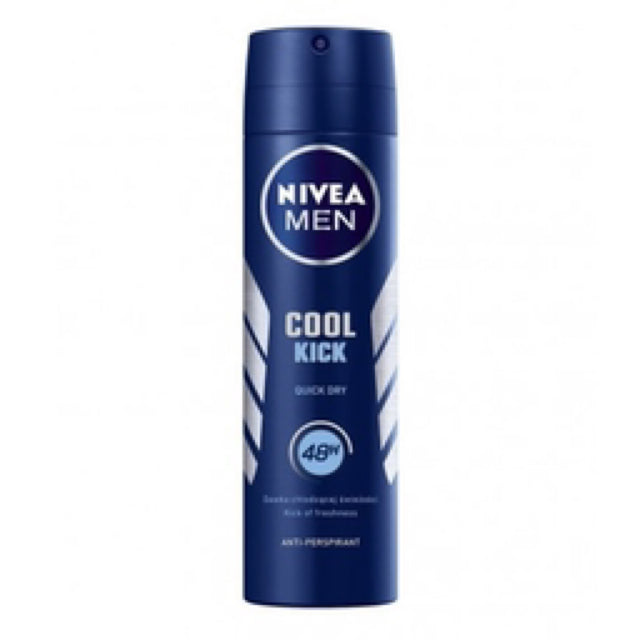 NIVEA Men Cool Kick Antiperspirant Spray with cooling and caring formula provides effective protection against excessive perspiration and an immediate feeling of exceptional freshness that lasts all day long. The perfect combination of the reliable protection of an antiperspirant and the gentle care of NIVEA. It has a stimulating fragrance that will accompany you for many hours after application. The product is also available in a roll-on. Dermatologically proven skin tolerance.