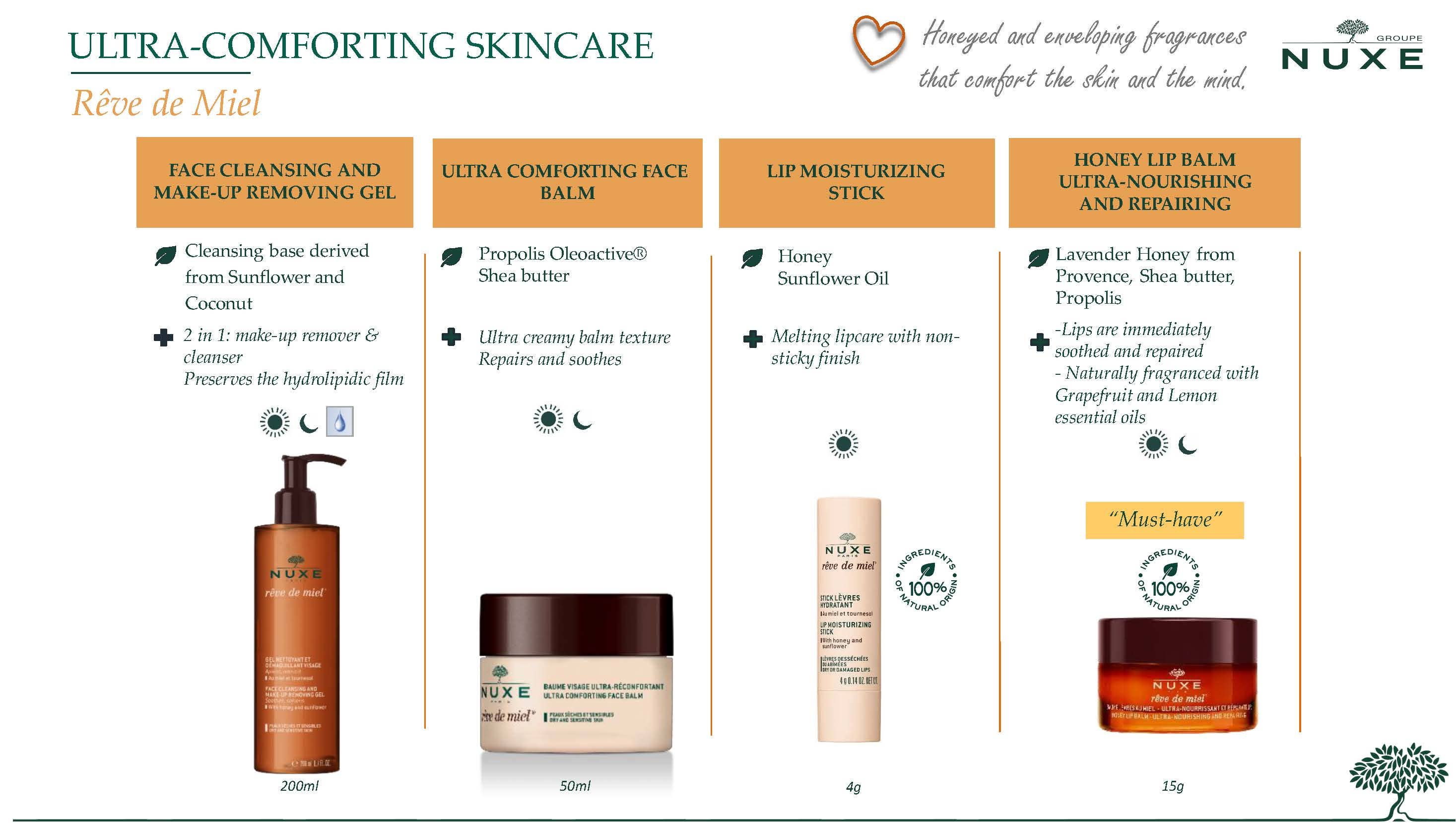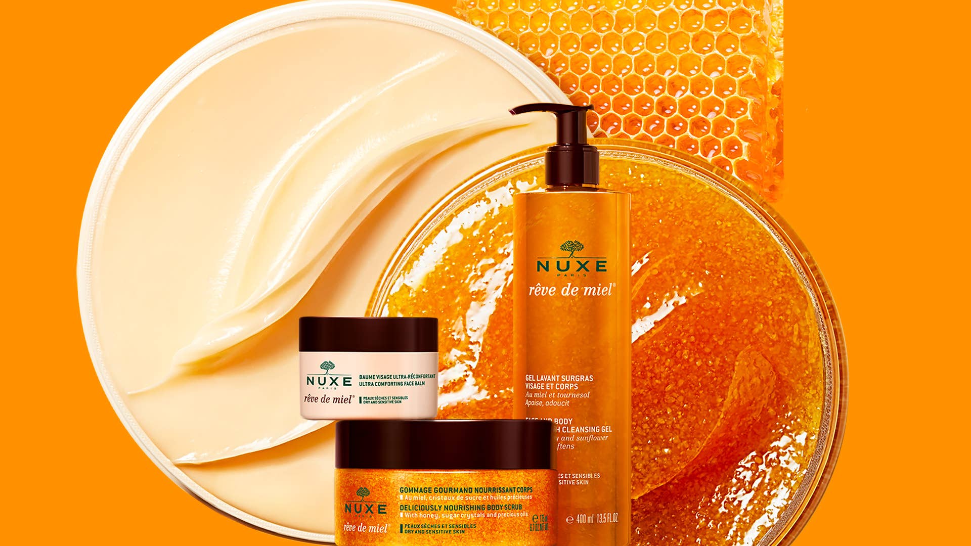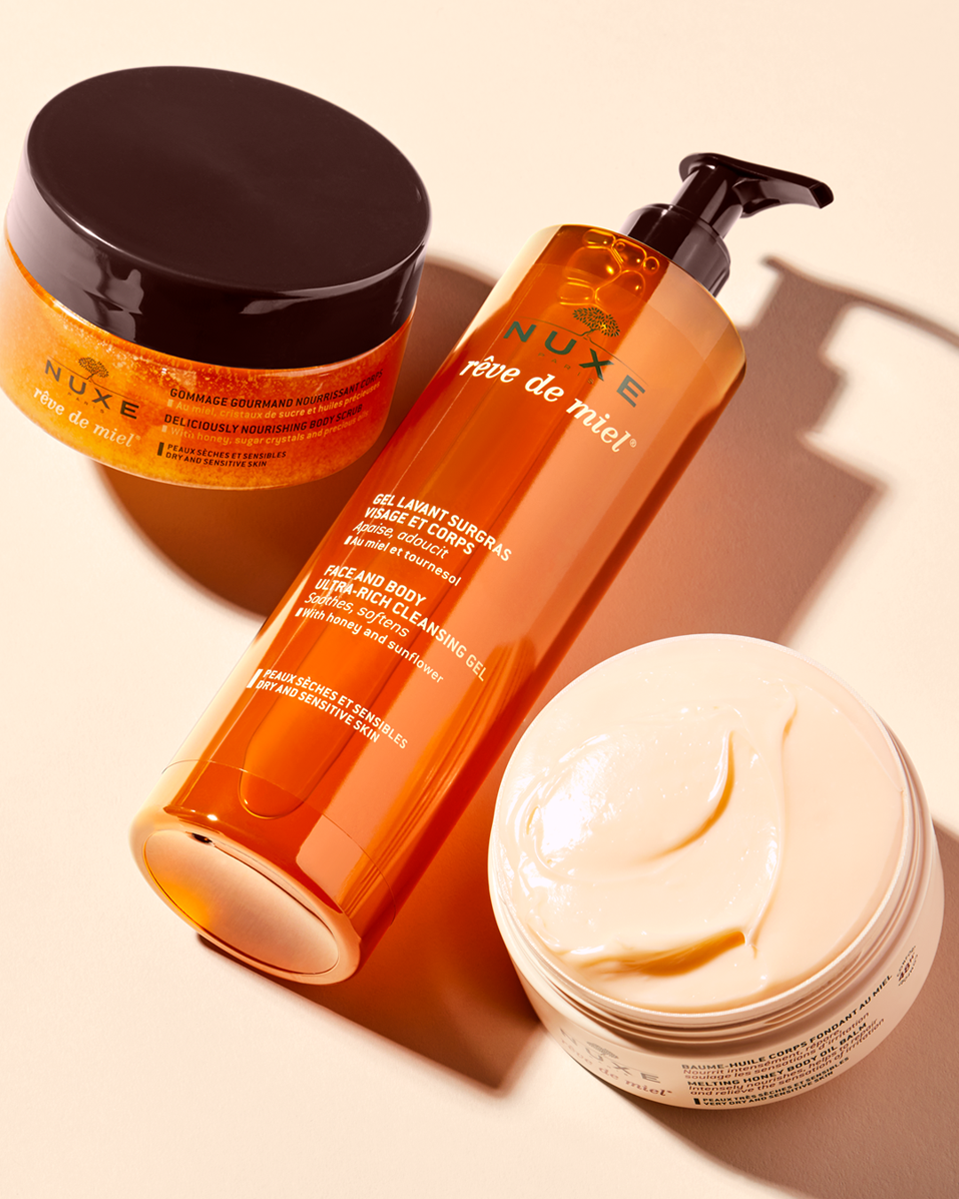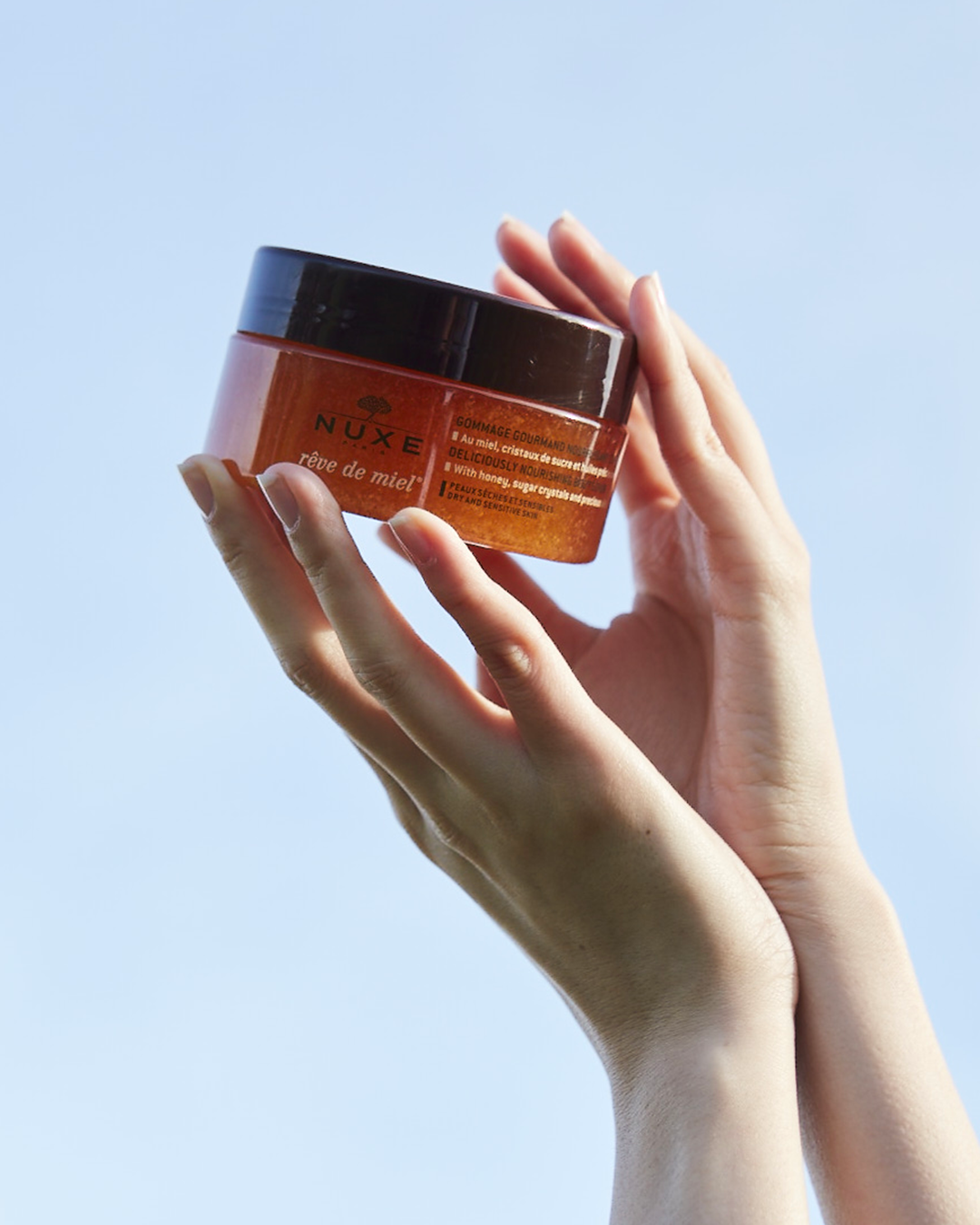 The 1st “2-in-1” shower Scrub: exfoliating and nourishing. NUXE has discovered the secret of changing textures, and surprises us once again with NUXE Rêve de Miel® Deliciously Nourishing Body Scrub, with all the richness of honey, that transforms into a milky balm when massaged into wet skin before covering the epidermis in a nourishing protective veil.