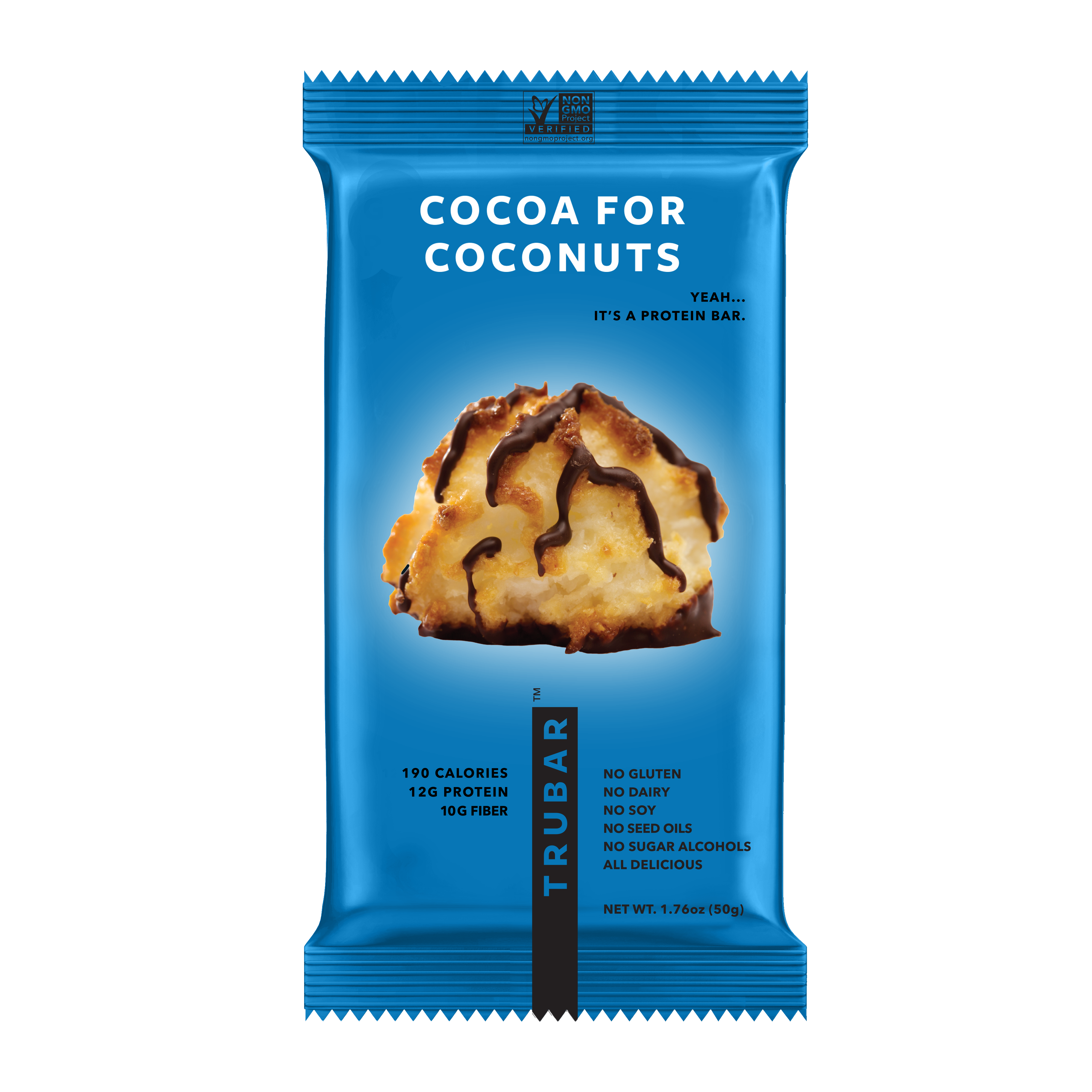 TRUBAR Cocoa for Coconuts delivers all the coconut + cocoa dessert vibes you love — without the junk you don’t. It's the plant-based protein bar you've been craving: clean, delicious, and made to go wherever you do.