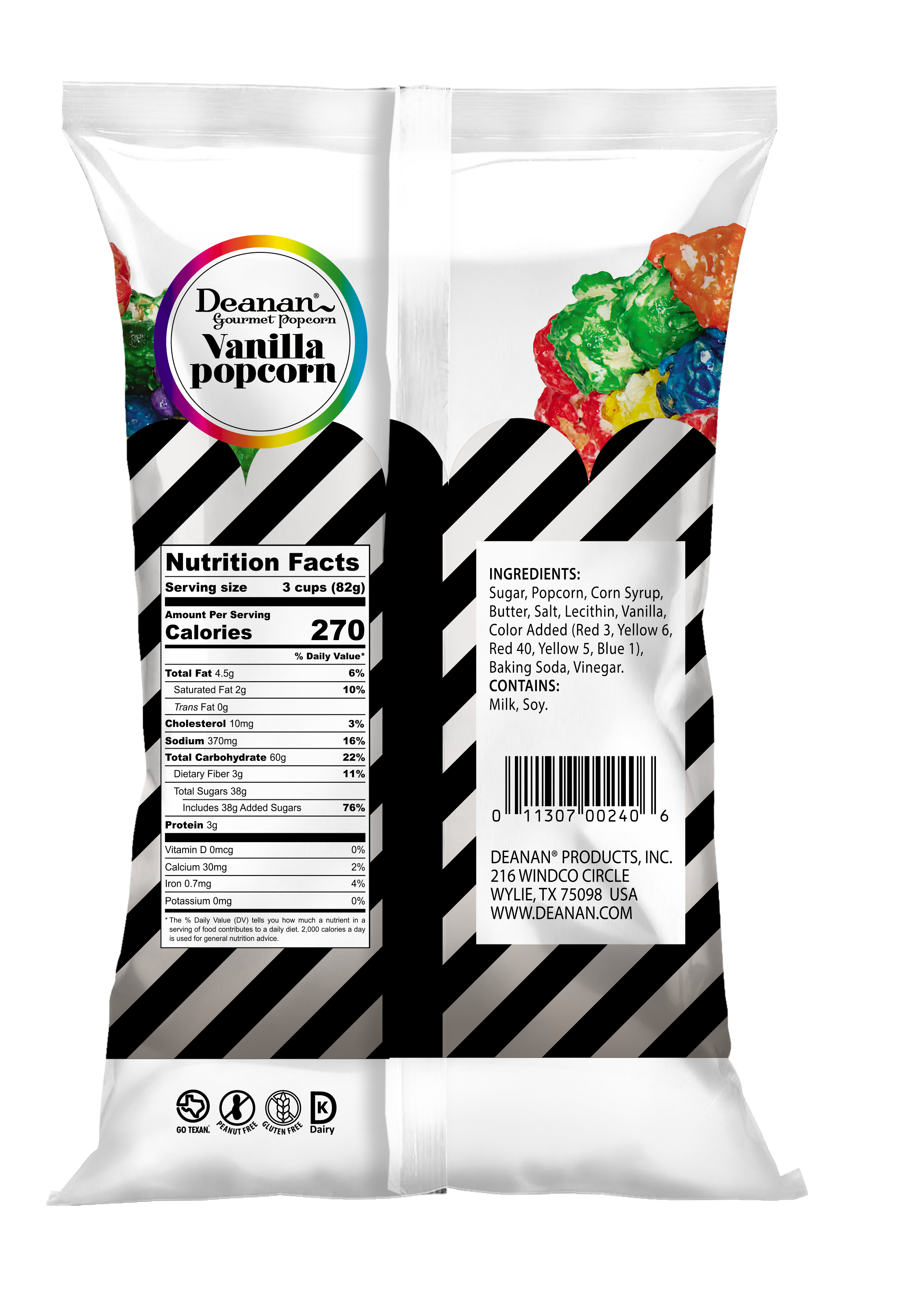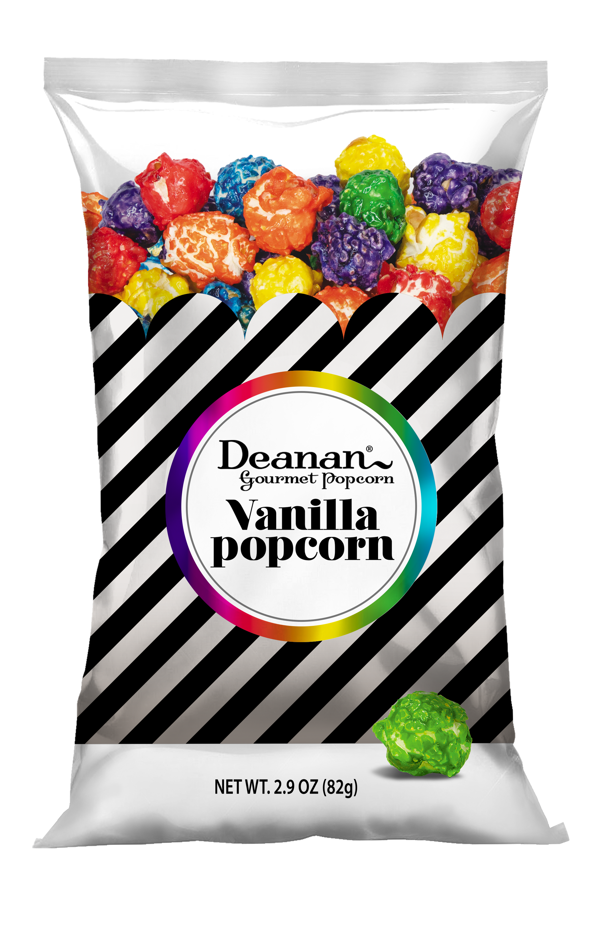 Introducing our popular Vanilla flavor, now available in eye-catching foil bags with an extended shelf life of 10 months – a true customer favorite!. These packets are the perfect snack size (2.9 oz) in single-serving packets. Each bag contains 3 cups of popped popcorn. It is not only colorful, it tastes amazing. We use Vanilla from Mexico, the birthplace of the vanilla bean! When we add our butter to this delightfully colored popcorn, it becomes a sweet fiesta in your mouth. Full Size bags are 9" tall including the seal area on either end of the bag and 5 1/4” wide.
