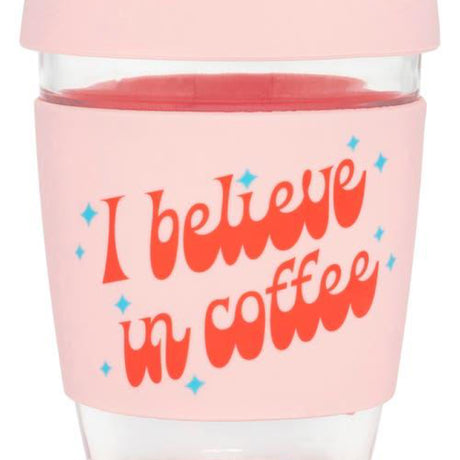 Reusable Glass Coffee Cup, 12 oz Travel Cup, Clear Coffee Mug with Silicone Lid and Sleeve