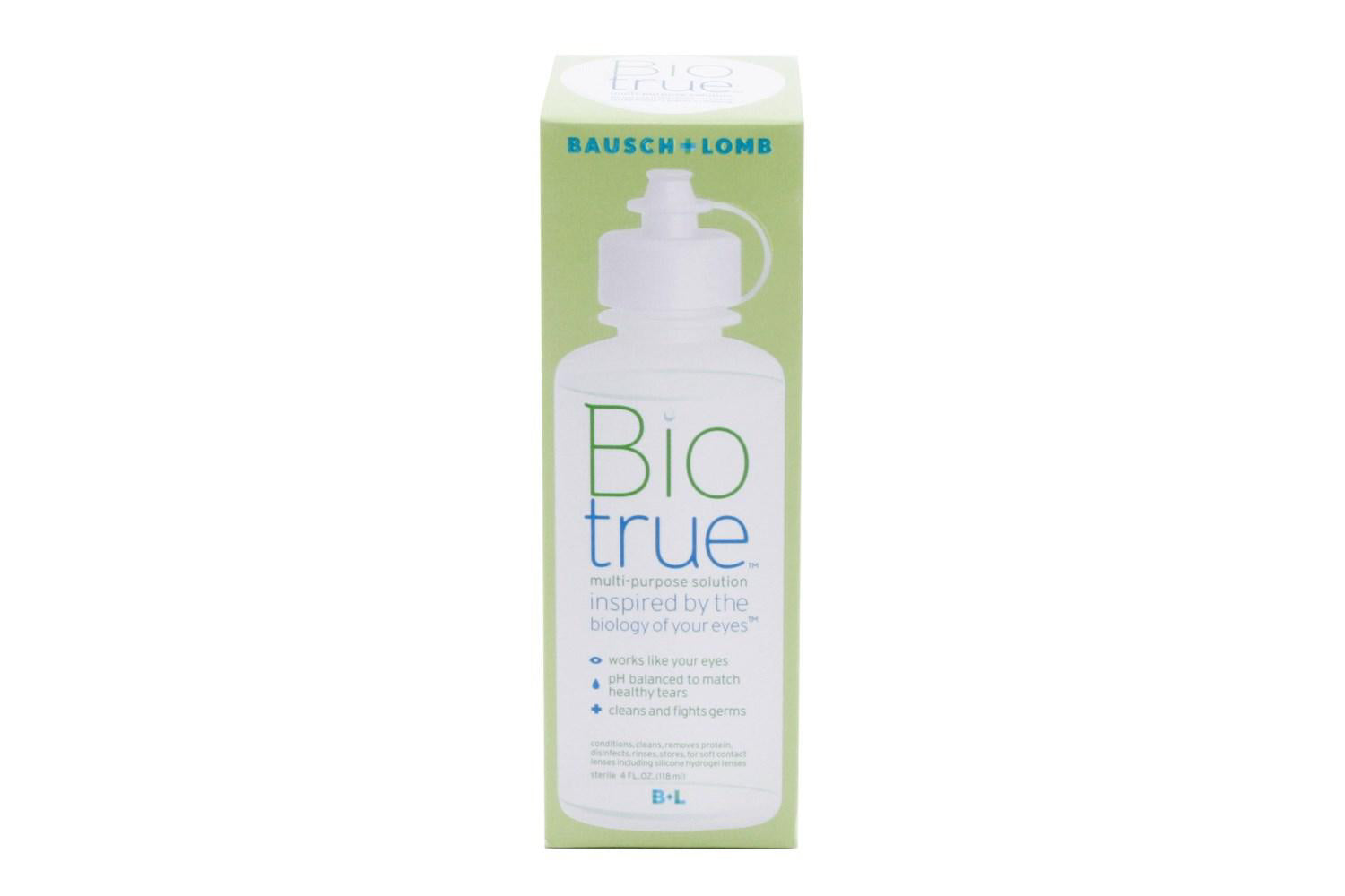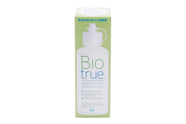 Biotrue Multi-Purpose Contact Lens Solution gently cleans and disinfects soft contact lenses while providing lasting hydration. Its formula matches the pH of healthy tears for effective cleaning and all-day comfort.