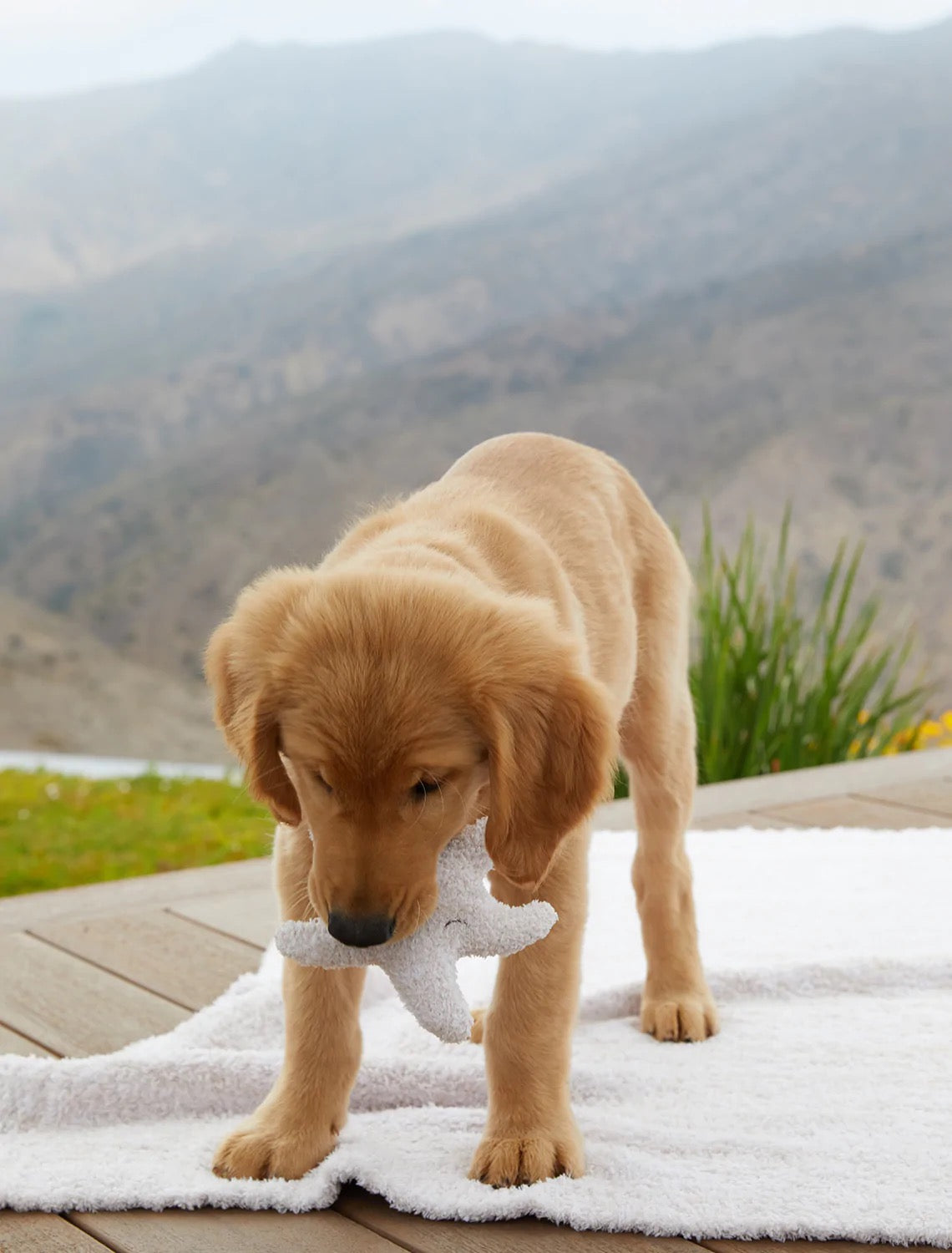 It's no secret that pets love Barefoot Dreams blankets as much as the rest of us, which led us to create this perfectly sized Buddie and Blanket Pet Bundle. We used two yarns to create a softly heathered effect for the blanket and coordinating Starfish Buddie. Our first pet toy, this Starfish Buddie squeaks when pressed and is sure to become a new favorite.