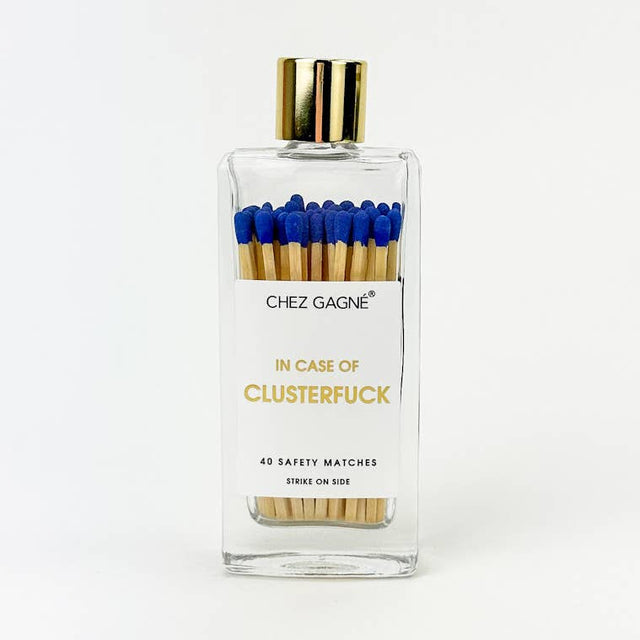 In Case of Clusterfuck - Glass Bottle of 40qty Royal Blue Tipped Safety Matches