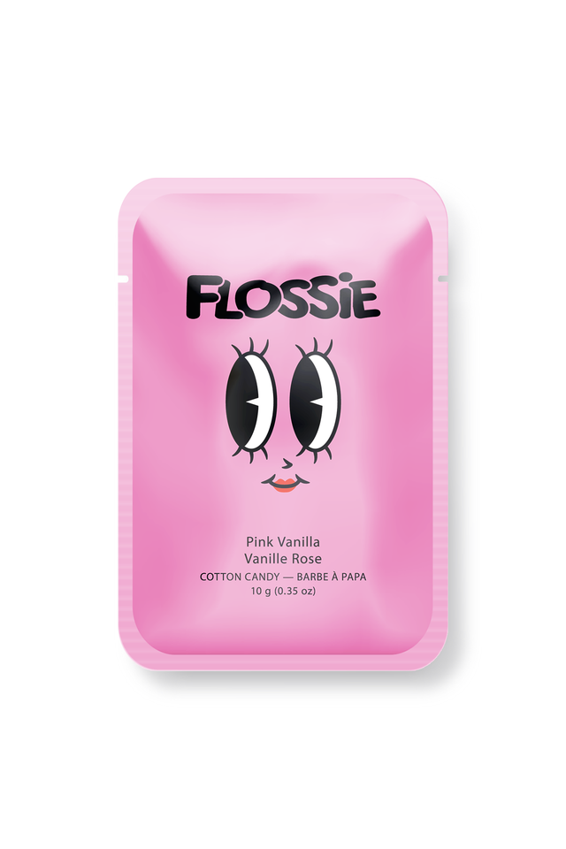 Flossie is 40 cal per package and is gluten-free, vegan, and handmade in Canada. Store in a cool, dry place, away from sunlight when not being displayed. Self life is 6+ months. Once opened, consume immediately. Flossie is packaged as the perfect single serving size of cotton candy.