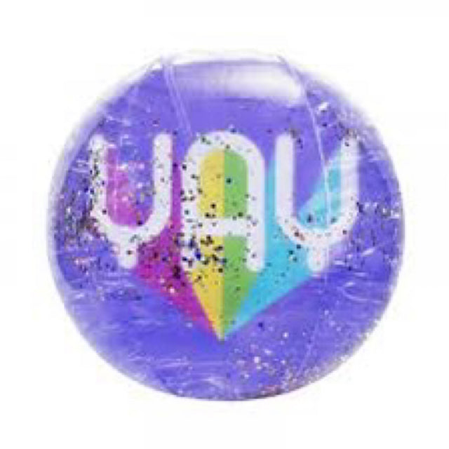 This beach ball will bring happiness to the beach or pool! Inside the beach ball is a 3D YAY design in the middle. A great beach ball to use with the family for all kinds of games on land and at sea.