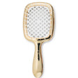 From detangling to styling, this beautiful brush does it all! The structure of the brush dries the hair quickly and effortlessly without causing damage in the process. Perfect for those who are seeking an easy way to blow-dry and create effortless style. This brush has the added elegance of a gold frame, the perfect touch! It also provides a soft scalp massage to stimulate the hair follicle.