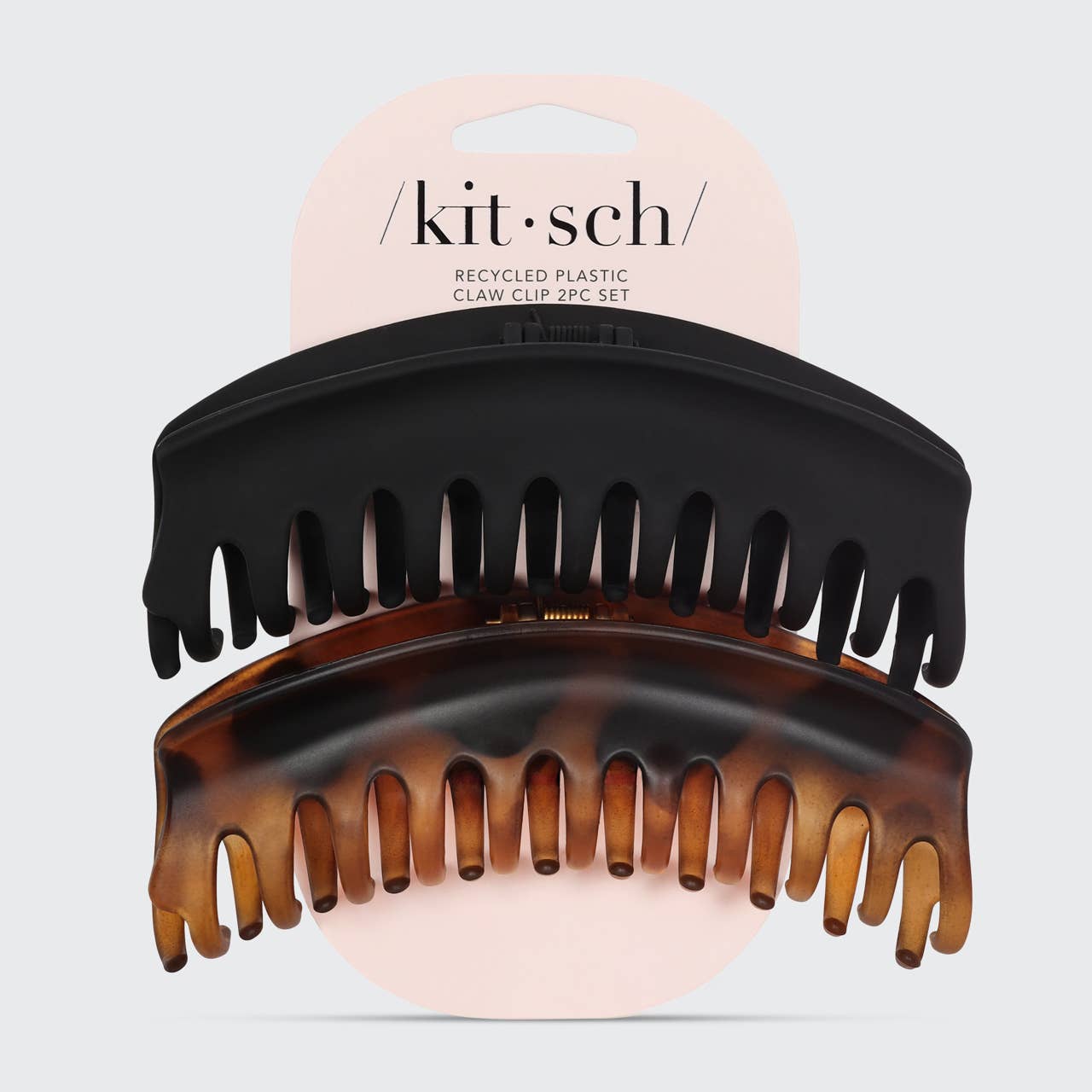 Recycled Plastic Large Dome Claw Clips 2pc - Black & Tort