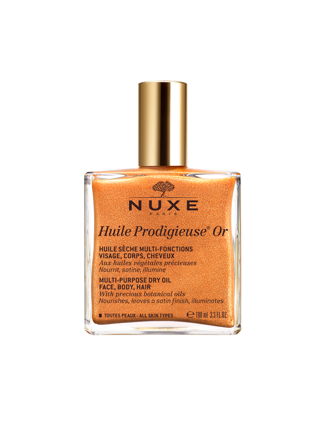 The sensorial shimmering version of Huile prodigieuse® contains tiny shimmering mineral particles.