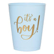 -Pale blue cocktail cup with "It's a Boy" in gold script
