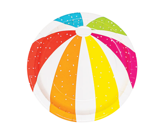 Have a ball enjoying your favorite summer party foods on Beach Ball Dessert Plates! These small paper plates look like colorful beach balls. Pair these party plates with other summer-themed tableware. Use beach ball plates to serve hamburgers, pizza, and other delicious foods at your child's summer pool party!
