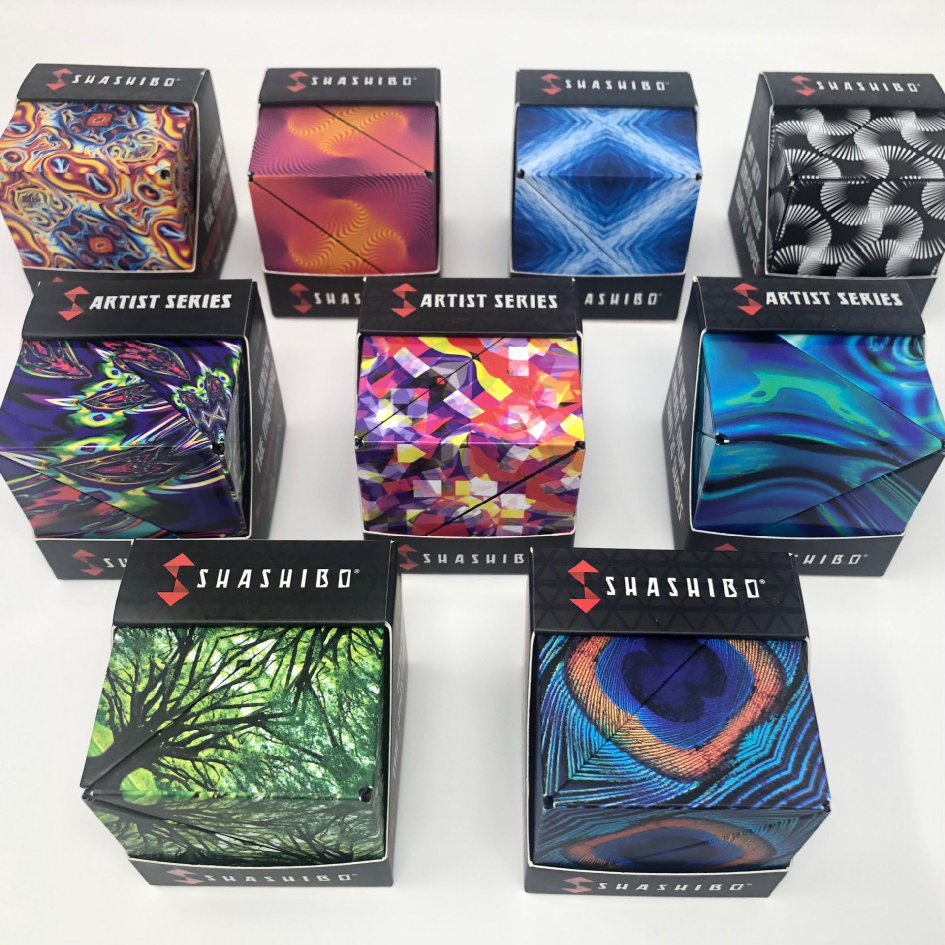 Unlike other puzzle box toys that turn out disappointing & dull, the patented, award-winning Shashibo fidget box features 36 rare earth magnets for an innovative design that transforms into over 70 shapes. Fits comfortably in the hand for hours of mind-challenging fun, stimulate the senses with unlimited creative possibility! Can you master the Shape-Shifting Box? Nothing compares to the quality & unique design of the Shashibo, durably constructed of premium injection-mold plastic, 36 rare earth magnets, and a tear-proof, matte or high-gloss surface. Each magnetic puzzle features 4 unique, artistic patterns of vibrant, mesmerizing artwork, for an ever-changing array of beauty at your fingertips.