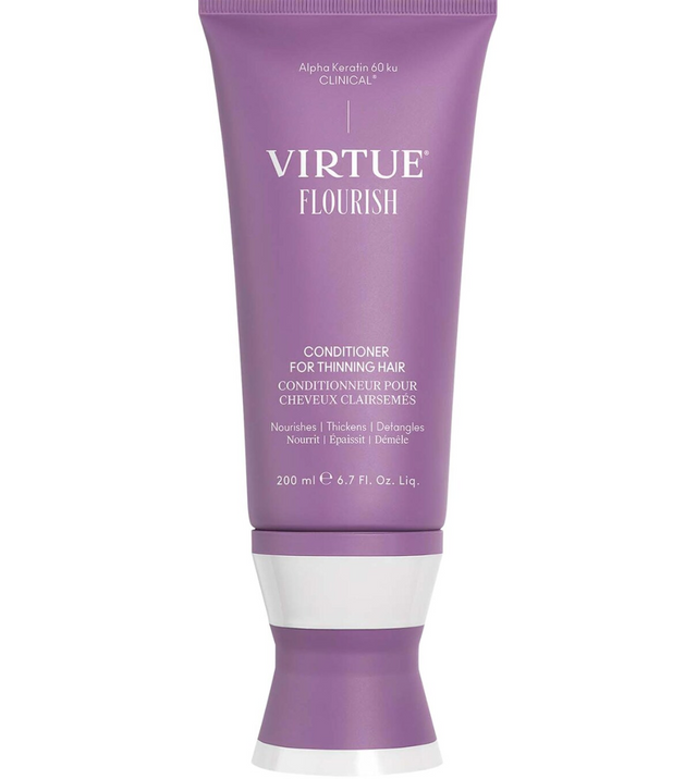 Flourish Conditioner for Thinning Hair is a hair strengthener, hydrator, and detangler all in one. Specifically developed for fine, fragile strands, it nourishes and thickens each hair without weighing it down. This lightweight, sulfate-free conditioner is formulated with our patented Alpha + Gamma Keratins, a highly active Green Tea and Probiotics to leave hair smooth, silky, comb-able and less prone to pulling or breakage. Color-safe, paraben-free, vegan and gluten-free.