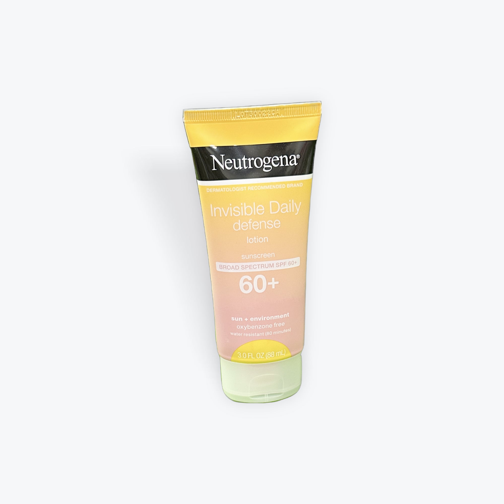 Protect skin against the sun and environmental aggressors with Neutrogena Invisible Daily Defense Sunscreen Lotion. This broad spectrum SPF 60+ sunscreen from a dermatologist-recommended brand is formulated with Helioplex technology to help prevent sunburn and provide broad spectrum UVA/UVB protection to help find signs of aging skin due to UV exposure. The sunscreen lotion also contains an antioxidant complex that helps fight environmental aggressors like cold weather, ozone, and pollution, which can damage skin and lead to premature aging. Fragrance- and oxybenzone-free with a quick-drying, invisible formula that goes on clear on all skin tones and won't leave behind white marks, the sun and pollution protection lotion feels light on skin. Water-resistant for up to 80 minutes, the sunscreen is ideal for outdoor activities, including hiking and gardening. For best results, apply 15 minutes prior to sun exposure. Neutrogena Invisible Daily Defense Sunscreen Lotion with broad spectrum SPF 60+ for sun protection Dual purpose sunscreen lotion protects skin against the sun and environmental aggressors Helioplex technology helps prevent sunburn and provides broad spectrum UVA/UVB protection Helps fight signs of aging, such as wrinkles, dark spots, and fine lines due to UV exposure Antioxidant complex helps fight environmental aggressors like cold weather, ozone, and pollution