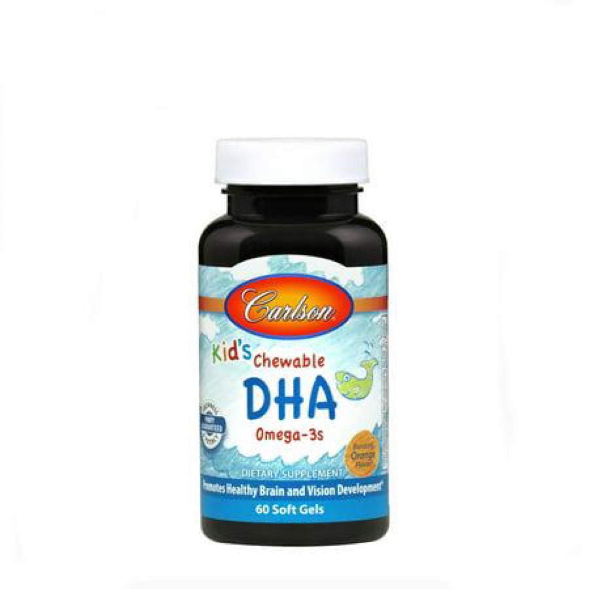 The omega-3 fatty acid DHA promotes healthy brain development and vision in growing children. Kid's Chewable DHA is a fun and tasty way to receive these benefits. Each soft gel bursts with delicious orange flavor from natural fruit sources. And like all Carlson omega-3s, freshness, potency, and purity is guaranteed.