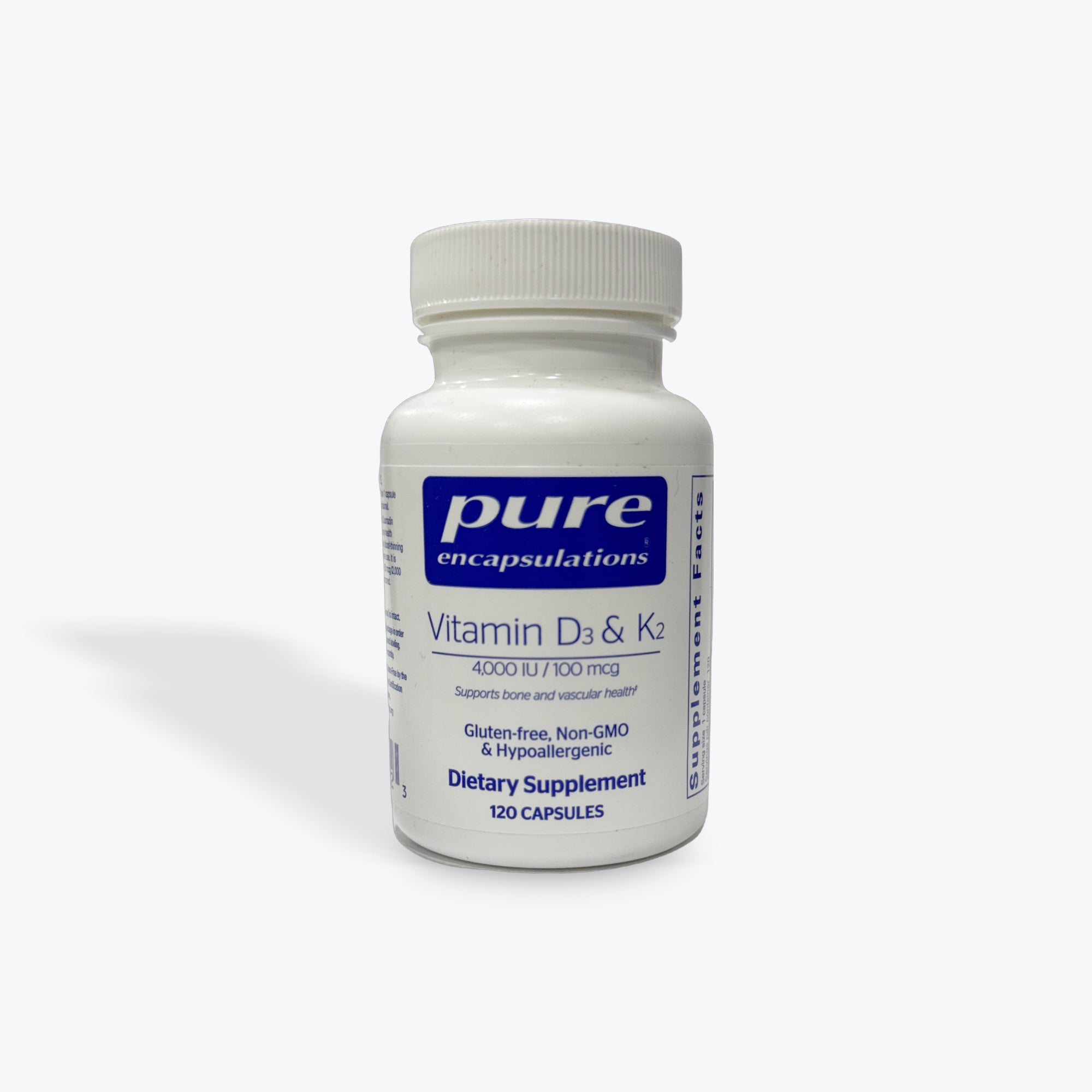 Pure Encapsulations Vitamin D3 & K2 is a synergistic dietary supplement designed to support bone, cardiovascular, and immune health. This formula combines two essential nutrients, vitamin D3 and vitamin K2, which work together to promote calcium absorption and utilization. Vitamin D3 enhances calcium absorption in the intestines, while vitamin K2 directs calcium to the bones and away from the arteries, ensuring optimal calcium metabolism.