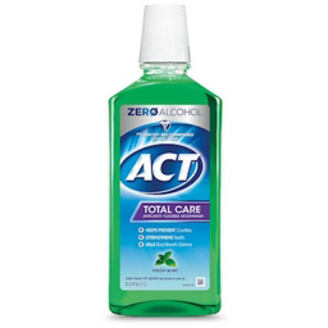 Swishing with ACT Total Care Mouthwash helps you go beyond brushing and flossing to care for your teeth. This anticavity mouthwash helps strengthen teeth for superior anticavity protection* and kill bad breath germs for a fresher mouth. This alcohol-free mouthwash in Fresh Mint flavor contains fortifying fluoride to strengthen teeth and prevent tooth decay. Expect more from your mouthwash. Trust ACT, the No. 1 dentist recommended enamel strengthening brand** for a stronger smile.When it comes to your dental health, you're in it for the long haul. Delivering a superior swish for today and tomorrow, the power of ACT mouthwash helps keep your teeth four times stronger***.