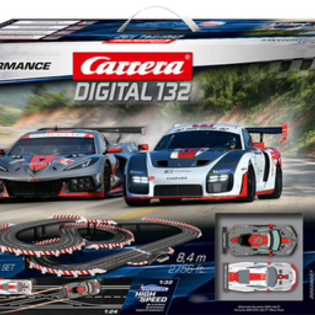 Premium digital racetrack system with 1:24 scale track and 1:32 scale cars with lane changing and tactical passing capabilities on over 27-feet of track. All cars feature authentic styling and details so they look just like the real thing