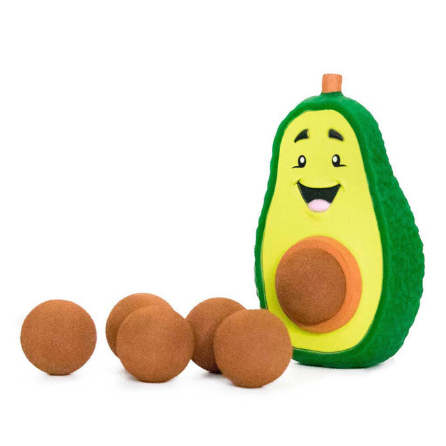 I'm A Fruit AND A Popper! Avocado Poppers are the first fruit that shoots a soft foam ball up to 20 feet! Probably not 100% accurate but they do include six soft foam balls that resemble a pit.