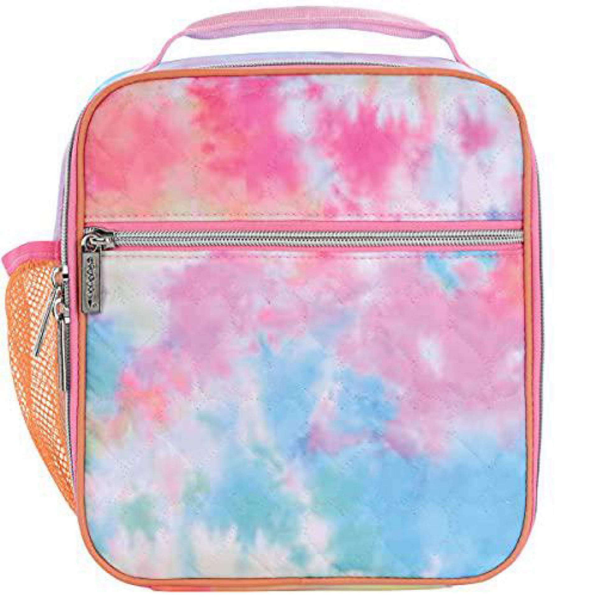 Stay stylish while keeping your lunch fresh with the iscream Cotton Candy Quilted Hearts Lunch Tote! Featuring an adorable design, insulated lining, and a convenient bottle pocket, this 9" x 8" tote is perfect for on-the-go meals.