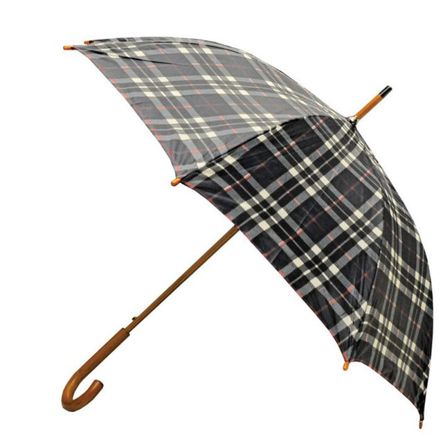 Plaid Classic Auto Open Umbrella with Real Wooden Hook Handle