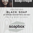 Soap = hope. 100% natural. With African shea butter & sea salt. Face. Body. Soul. Buy one and we give one to a child in need. More than 3,000 children's lives could be saved every day with something as simple as a bar of soap and clean water. Good. Clean. Soap. 100% natural. Palm oil free. Cruelty free. Vegan. Gluten free. Smells like hope. Black = detoxifying. Pure 100% natural. Cruelty free & vegan. Does not contain any parabens, sulfates, or petrochemicals.